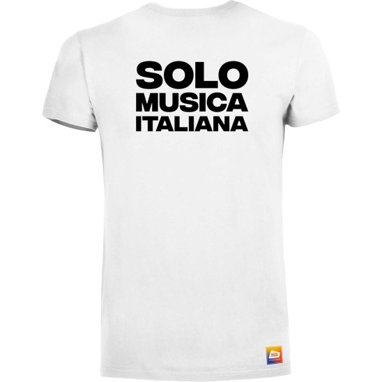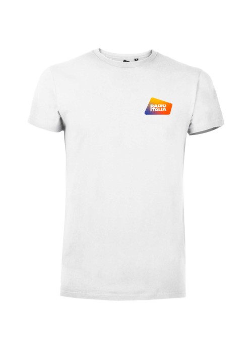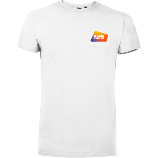 Struttura con busto tubolare, colletto doppio strato a costine con cuciture doppie, nastro di rinforzo al collo. Materiale 100% cotone biologico. Grammatura 150 gr. Modello unisex. Personalizzazione fronte con logo Radio italia e scriita sul retro.