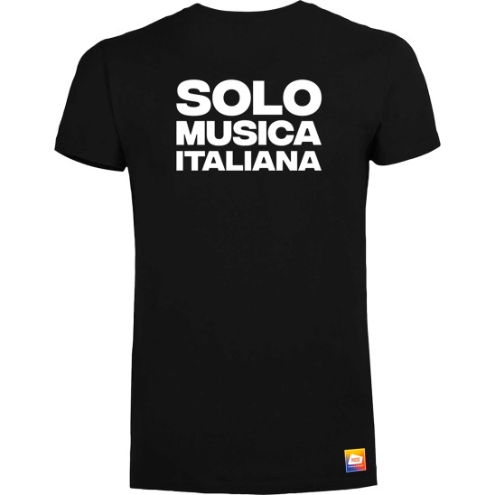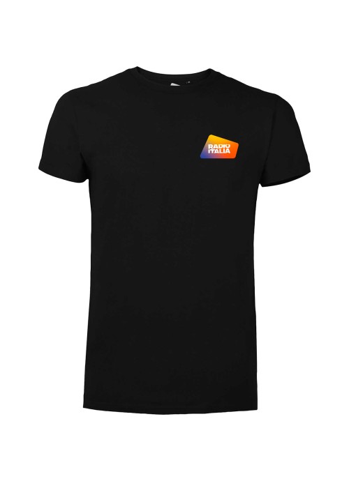 Struttura con busto tubolare, colletto doppio strato a costine con cuciture doppie, nastro di rinforzo al collo. Materiale 100% cotone biologico. Grammatura 150 gr. Modello unisex. Personalizzazione fronte con logo Radio italia e scriita sul retro.