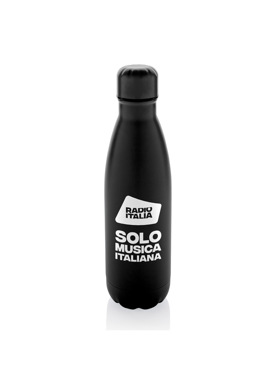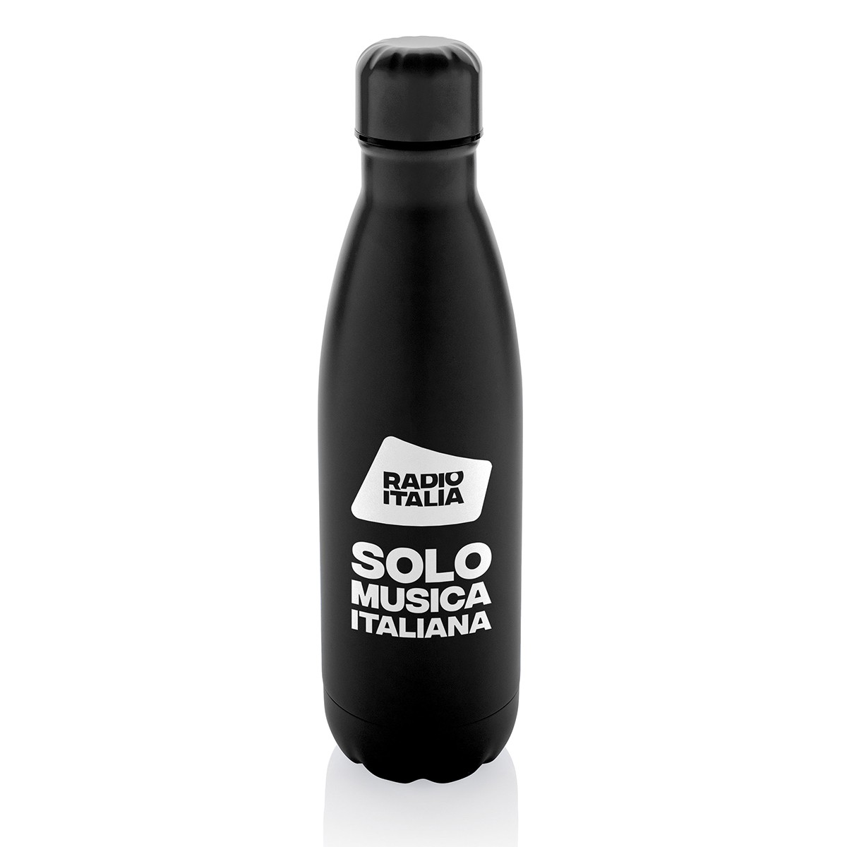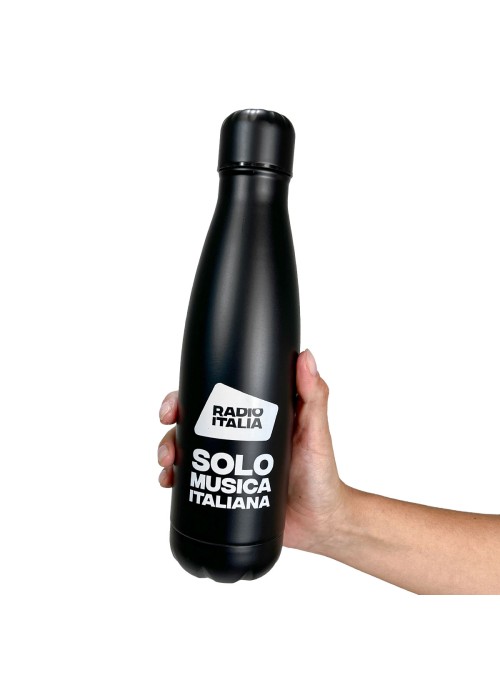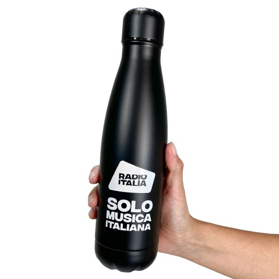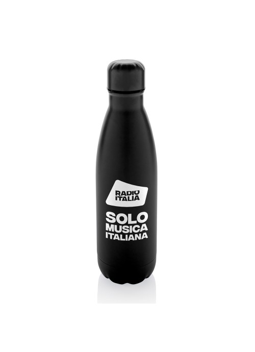Lo strato isolante in acciaio inossidabile 18/8 mantiene le bevande calde o fredde per diverse ore. Capacità 500 ml. personalizzazione grafica Radio Italia