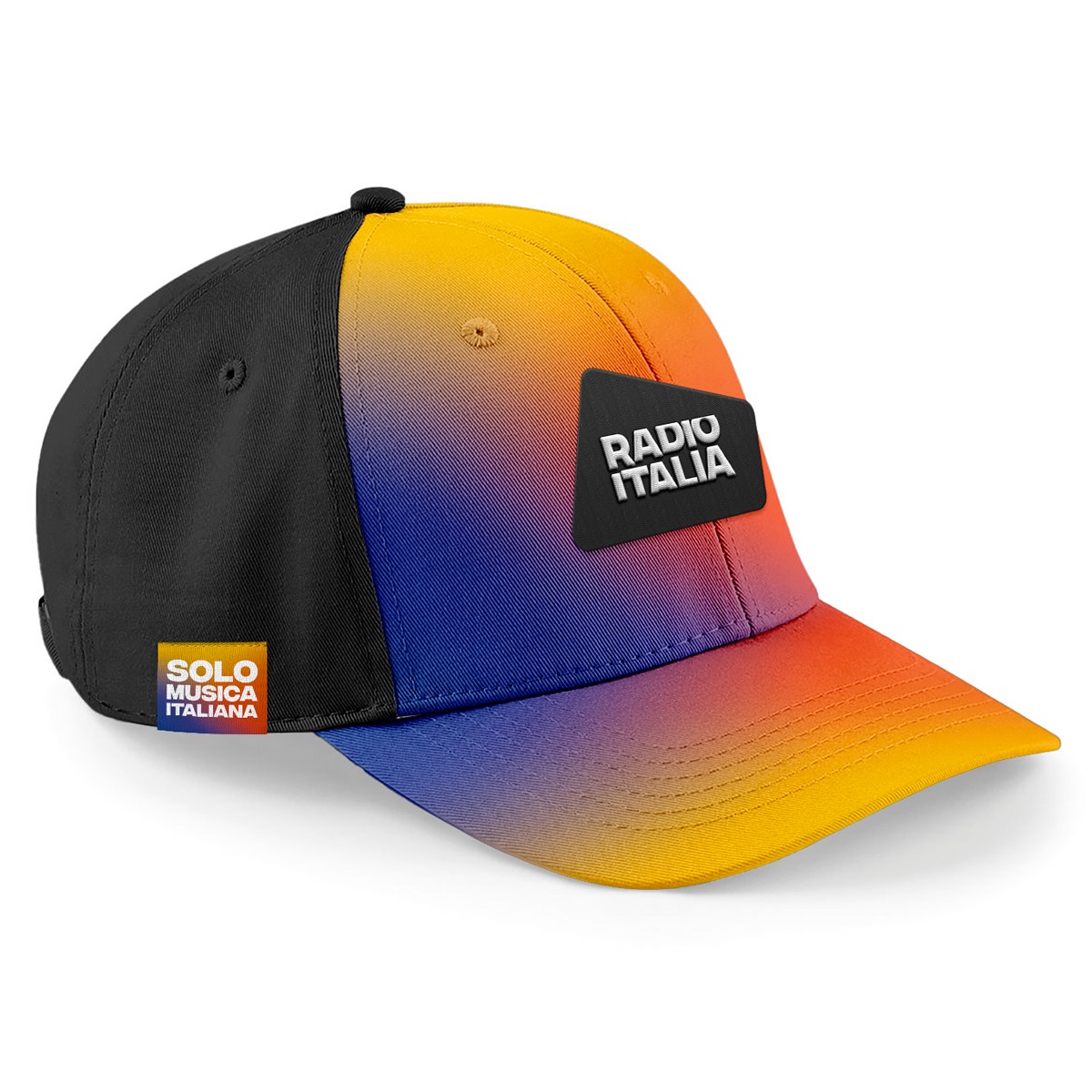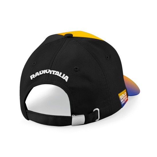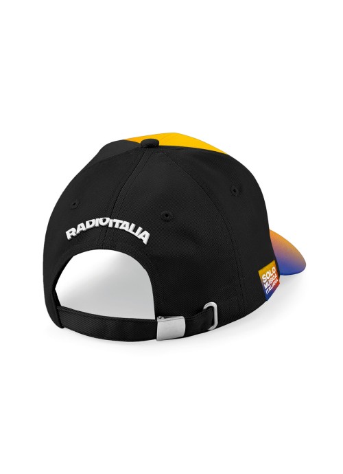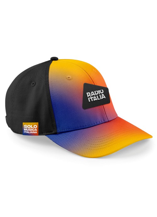 Regolabile sul retro con fibbia reglatore. Materiale 100% cotone. Personalizzazione fantasia texture sfumata sul fronte evisiera, retro di colore nero.