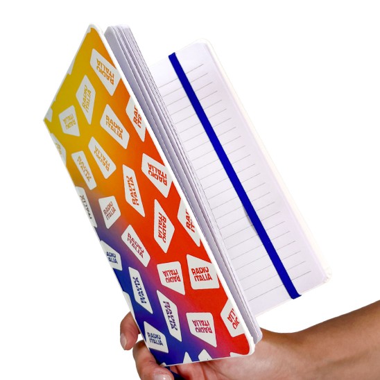 Composto da 80 pagine a righe (60g/m²). Personalizzazione sul fronte con stampa digitale sulla copertina fronte. Plastica di Poliuretano. FSC Mix Credit