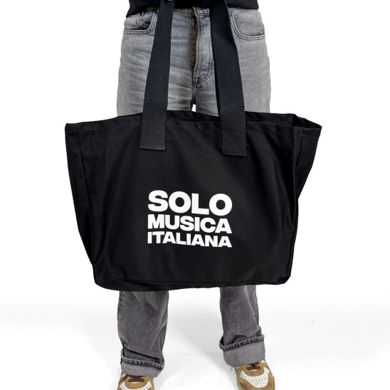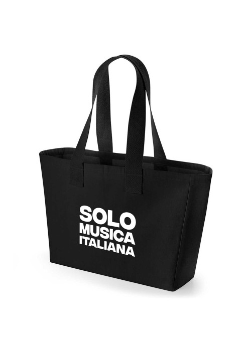 Borsa portabile a mano o a spalla, in stile oversize, con manici in morbida fettuccia ed etichetta removibile.