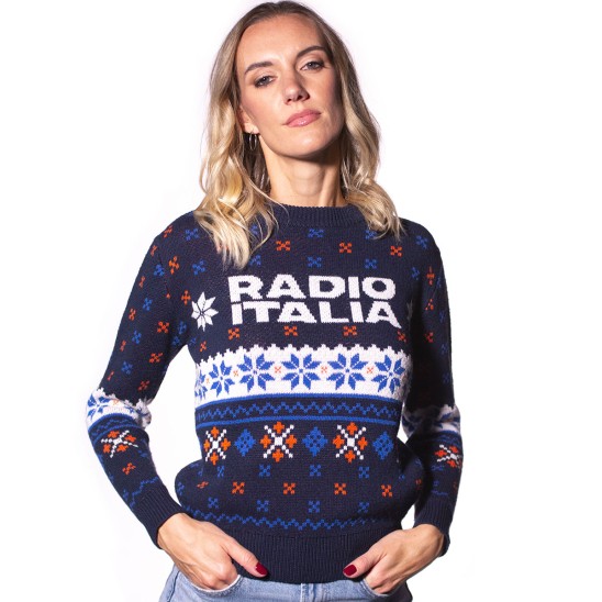 Composizione del filato 30% lana, 70% acrilico. Personalizzazione natalizia di Radio Italia.