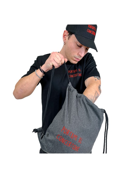 n° 1 sacca in tessuto di colore grigio con ricamo
