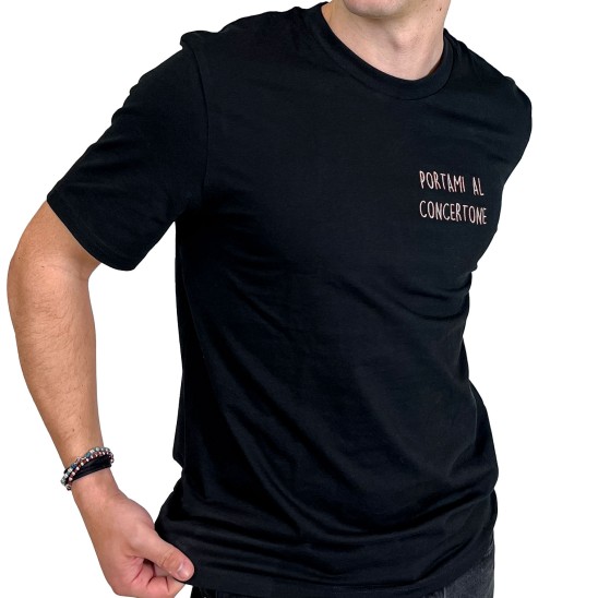 n° 1 T-shirt modello unisex girocollo, maniche corte, colore nero con ricamo a lato cuore